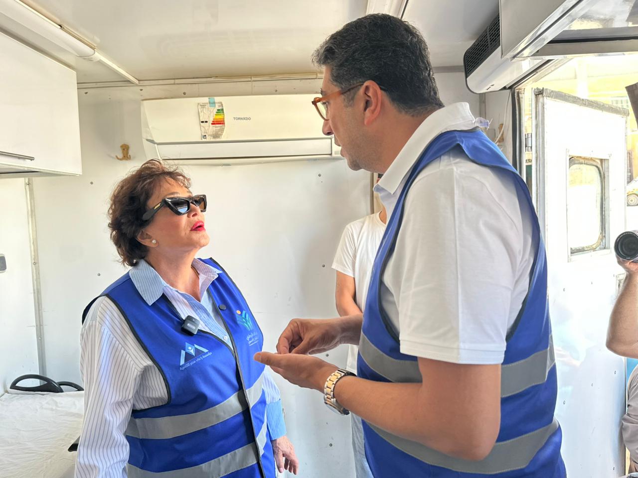 وأجرت الفنانة جولة داخل القوافل الطبية للمؤسسة بالمحافظة و التقت عددًا من المرضى كما قامت بزيارة عدد من المنازل التي تحتاج إلى إعادة تأهيل .