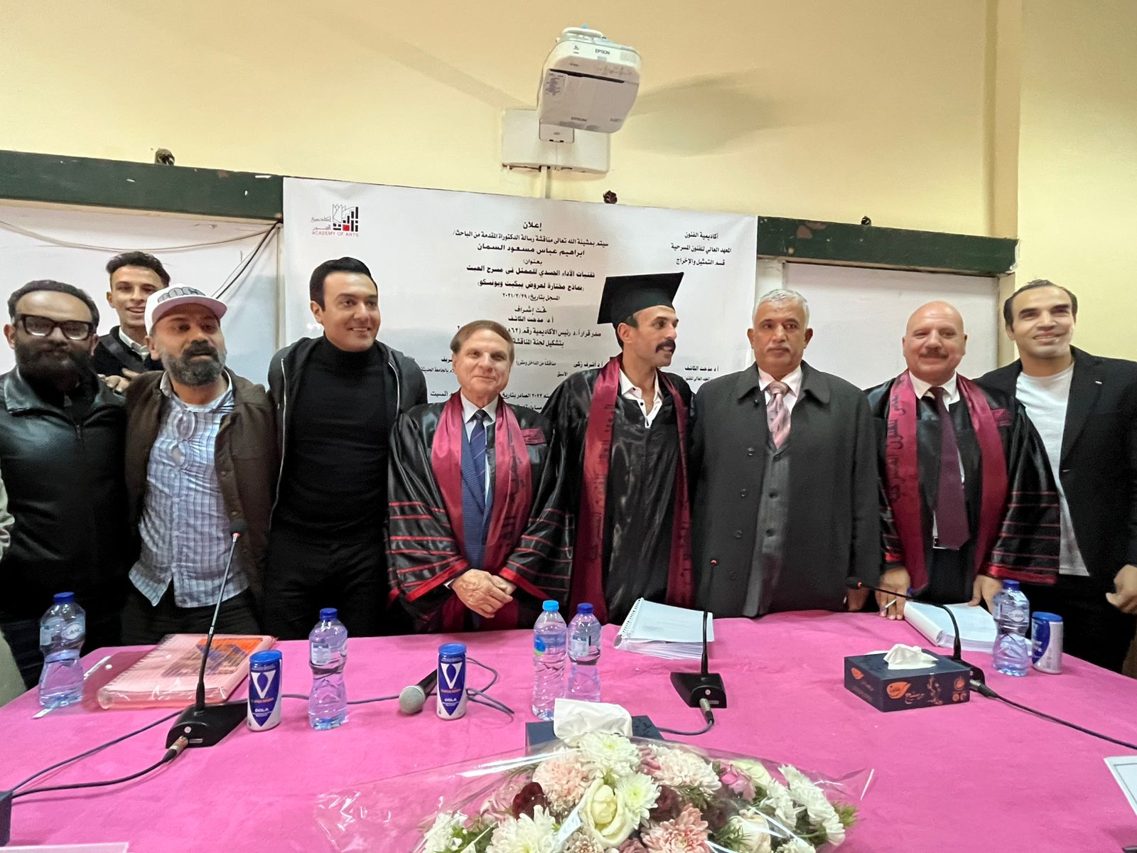 وأشادت لجنة المناقشة بالرسالة، مؤكدة تميزها علميًا وتطبيقيًا، وثراءها المرجعي، وقدرتها على الربط بين الجانب الأكاديمي والخبرة المسرحية العملية، وهو ما انعكس في قرار منح الباحث درجة الدكتوراه بمرتبة الشرف.