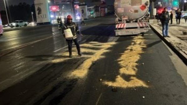 تلقت غرفة عمليات النجدة، بلاغا بوقوع حادث تسرب كميات بنزين أعلى محور التسعين الجنوبي فى التجمع وبناء على تعليمات اللواء الدكتور محمد الشربينى مدير الإدارة العامة للحماية المدنية بالقاهرة انتقلت سيارات الإنقاذ البرى الى مكان الحادث.