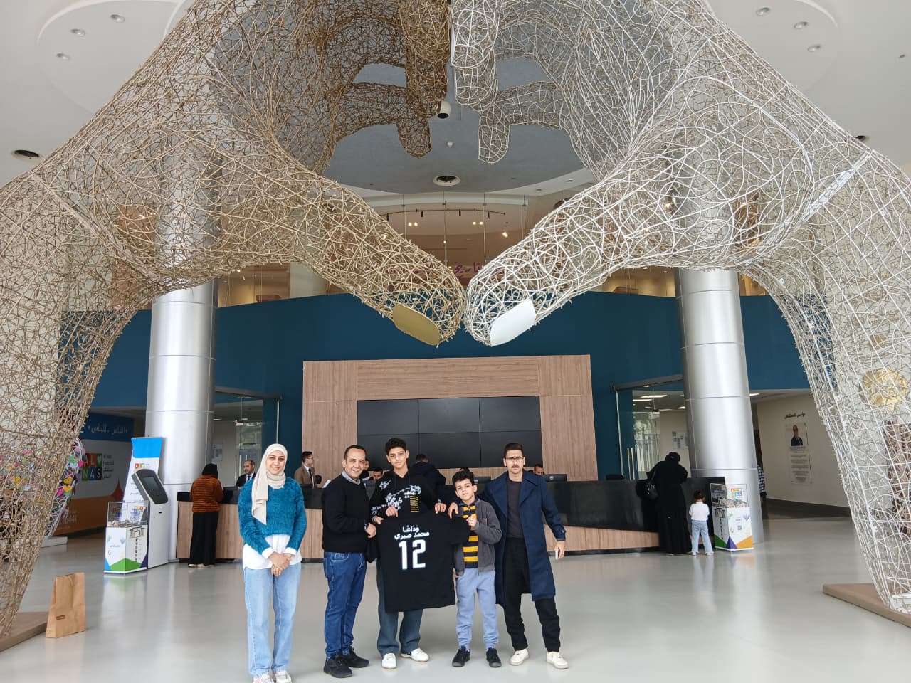 كذلك التقطوا صورة تذكارية في بهو المستشفى حاملين تيشيرت تذكاري لوالدهم مزين بصورته، ومدون عليه رقم 12 – وهو رقم قميصه أثناء فترة مشاركته في الملاعب بصفوف الزمالك – ورسالة وداع: «وداعًا محمد صبري».