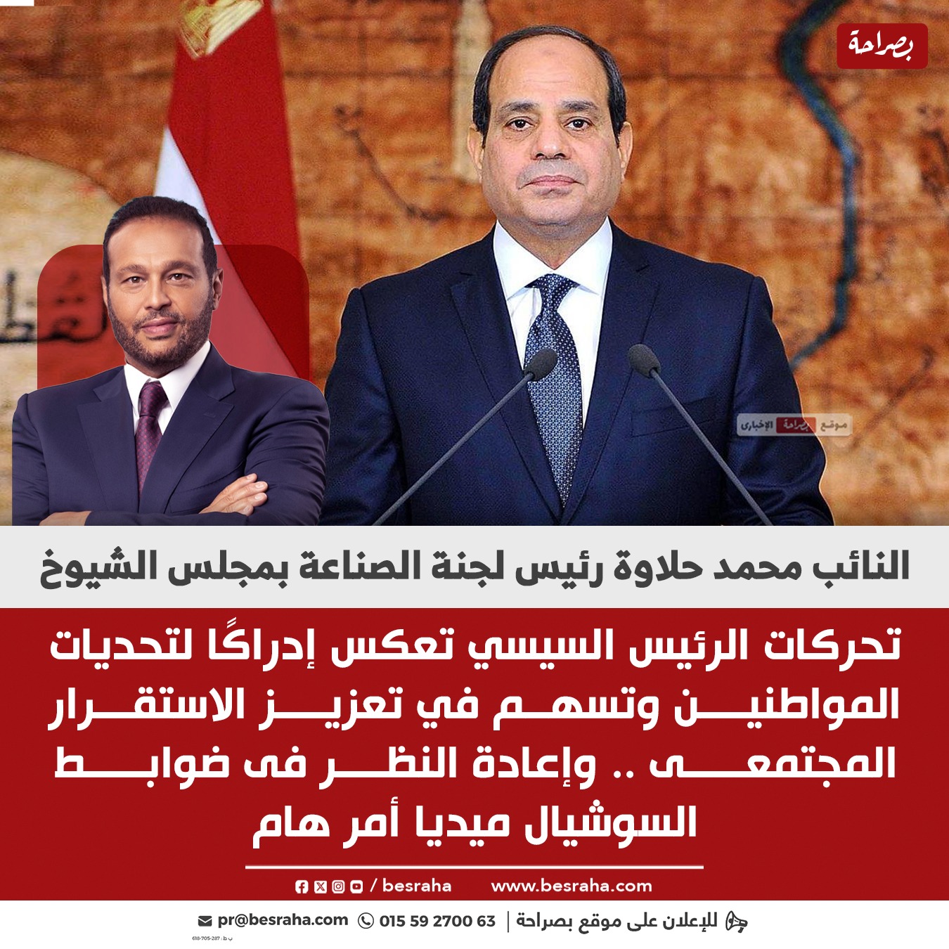1- النائب محمد حلاوة عضو مجلس الشيوخ : توجيهات الرئيس السيسي تعزز دعم الأسر المصرية وتلبي احتياجات المواطنين