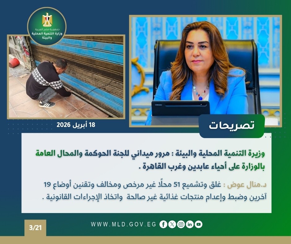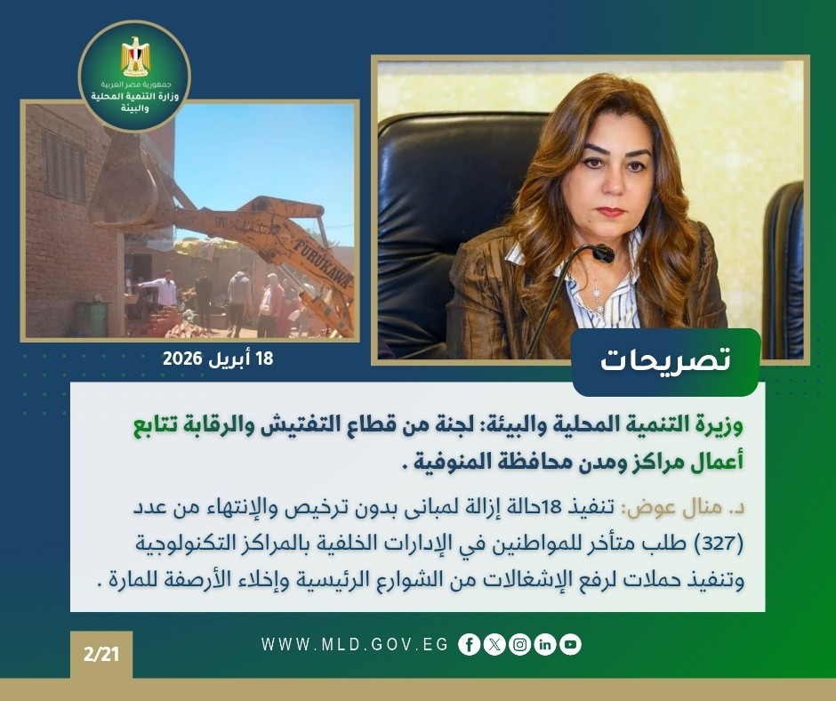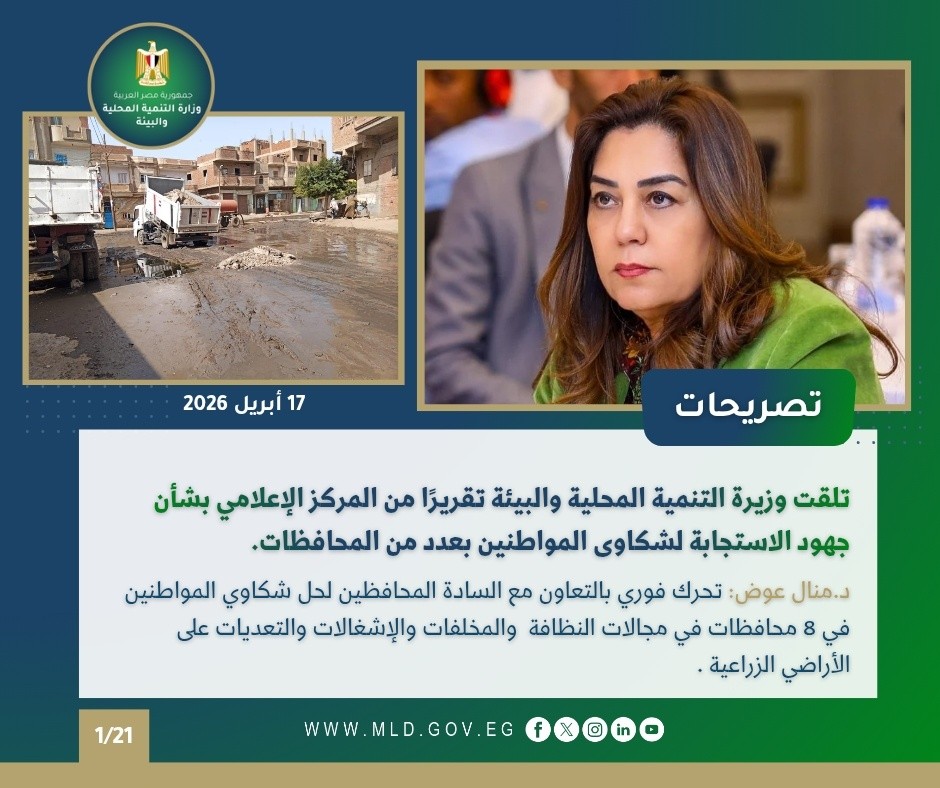 نشرة الحصاد الأسبوعي لأنشطة وزارة التنمية المحلية والبيئة (17 : 23 أبريل 2026) – الأخبار