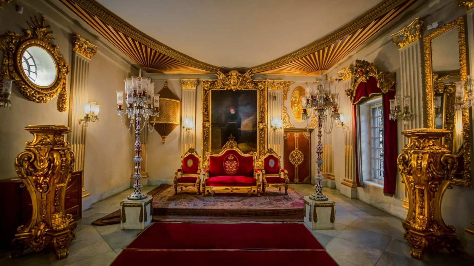 تُعتبر سرايا العرش من أكثر الأماكن فخامة داخل القصر، حيث كانت تُستخدم في المناسبات الرسمية والاستقبالات الكبرى، تتميز بزخارف ذهبية وألوان ملكية تعكس القوة والعظمة، وكانت مخصصة للجلوس الرسمي للأمير في الاحتفالات المهمة.