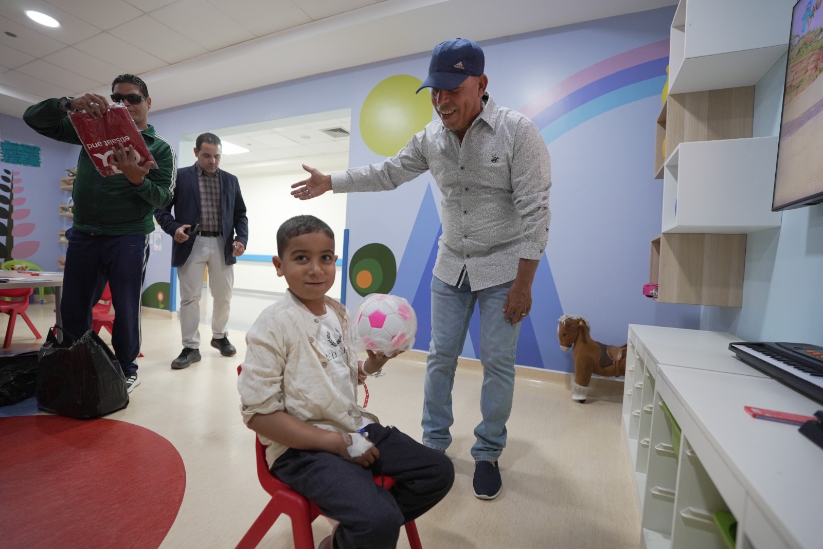 وخلال الزيارة، حرص الكابتن بدر رجب على إدخال السعادة والبهجة إلى نفوس الأطفال والعاملين بالمستشفى، حيث قام بتوزيع تيشيرتات النادي الأهلي عليهم، في لفتة إنسانية لاقت تفاعلًا واسعًا، وأسهمت في رسم الابتسامة على وجوه المرضى، خاصة الأطفال، الذين عبروا عن سعادتهم بهذه الزيارة والدعم المعنوي.
